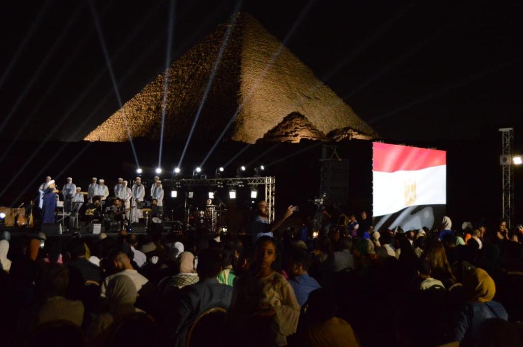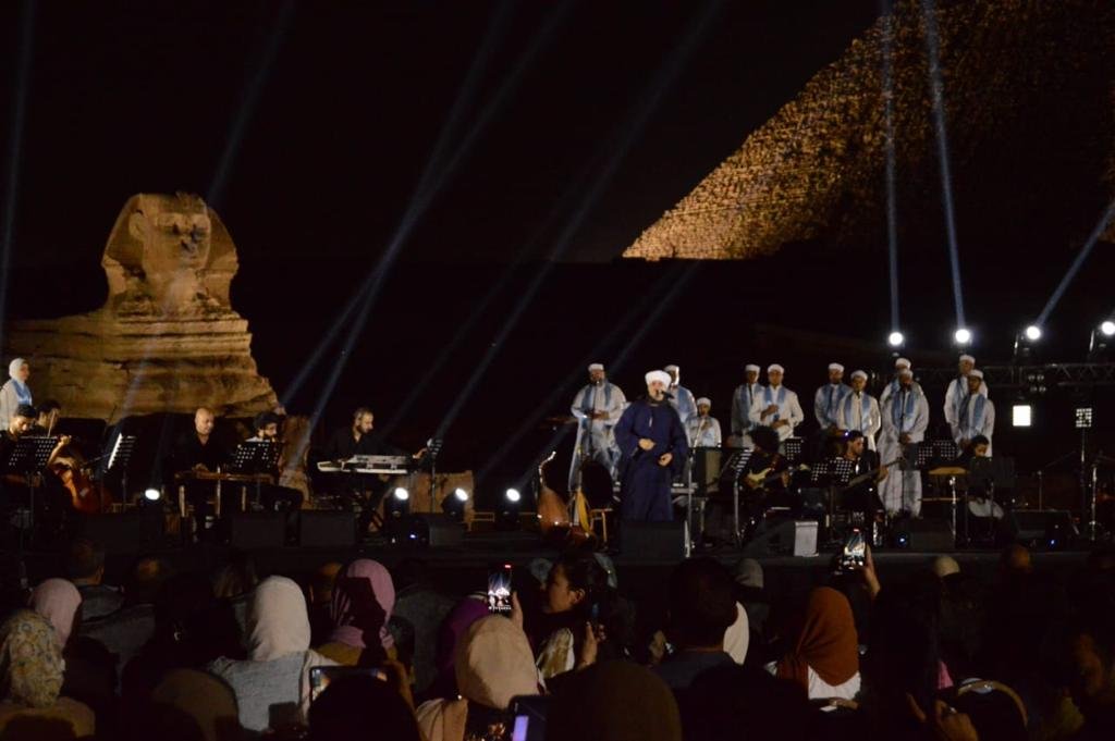 بالصور.. محمود التهامي يشعل أجواء سفح الأهرامات بأول حفل إنشاد ديني