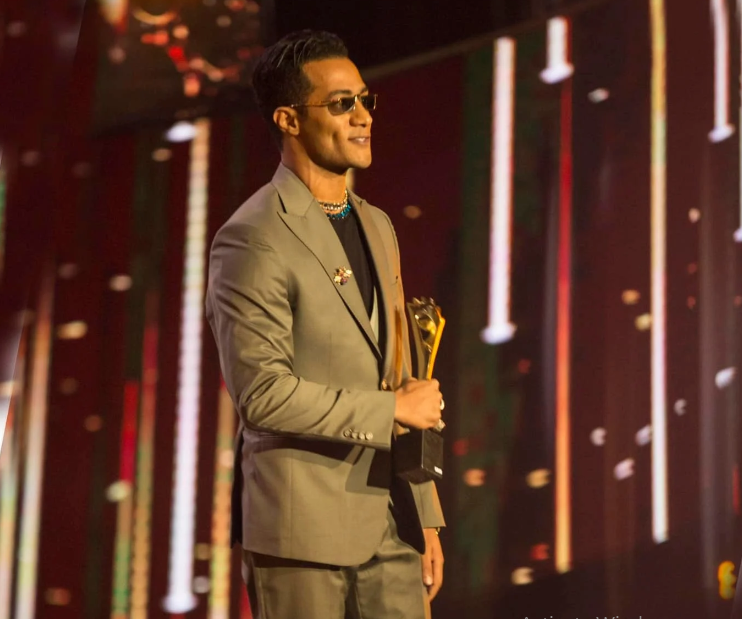 حيث ظهر رمضان، فى الصور بلوك جديد ومختلف عن الشكل المتعارف عليه، وهو لوك أعده خصيصا احتفالا بجائزته لهذا العام، وعلق قائلا: "ثقة فى الله نجاح دايما".