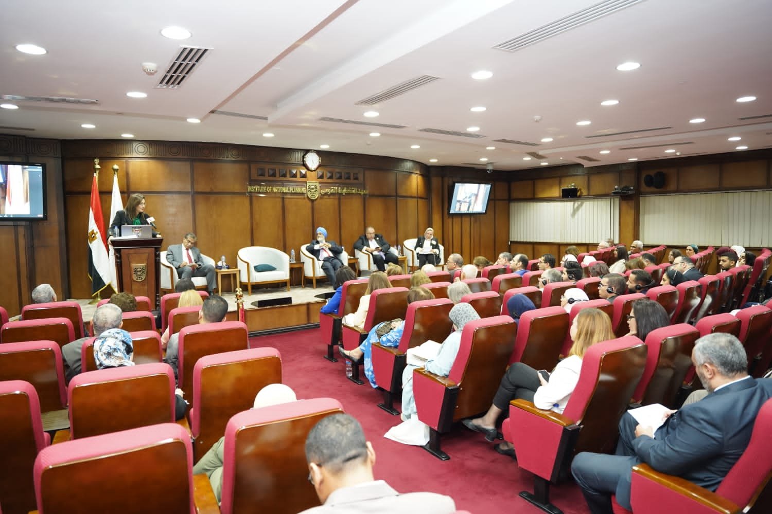 بحضور د.أشرف العربي رئيس معهد التخطيط القومي، الدكتور محمود محيي الدين، رائد المناخ في مرتمر الأطرافCOP27، مونتيك سينغ أهلواليا نائب رئيس لجنة التخطيط الهندي، ومستشار وزارة المالية، الدكتور خالد فهمي وزير البيئة السابق