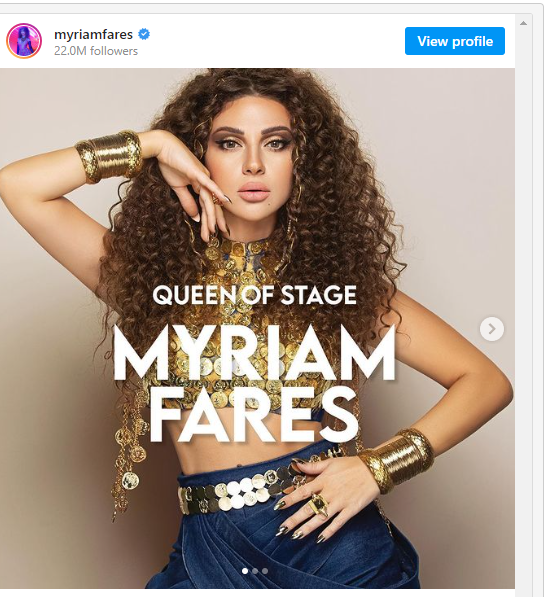 قامت الفنانة اللبنانية ميريام فارس بنشر صورة لها من أغنية كأس العالم، عبر حسابها الشخصى إنستجرام، والتى اشتركت فيها مع النجمين العالميين نيكى ميناج ومالوما.
