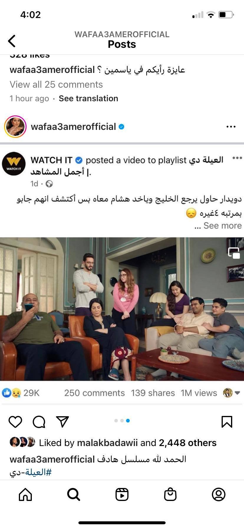 قامت الفنانة المصرية وفاء عامر بنشر عدة صور من مسلسلها الجديد "العيلة دي"، عبر موقع التواصل الاجتماعي للصور والفيديوهات"انستجرام ".