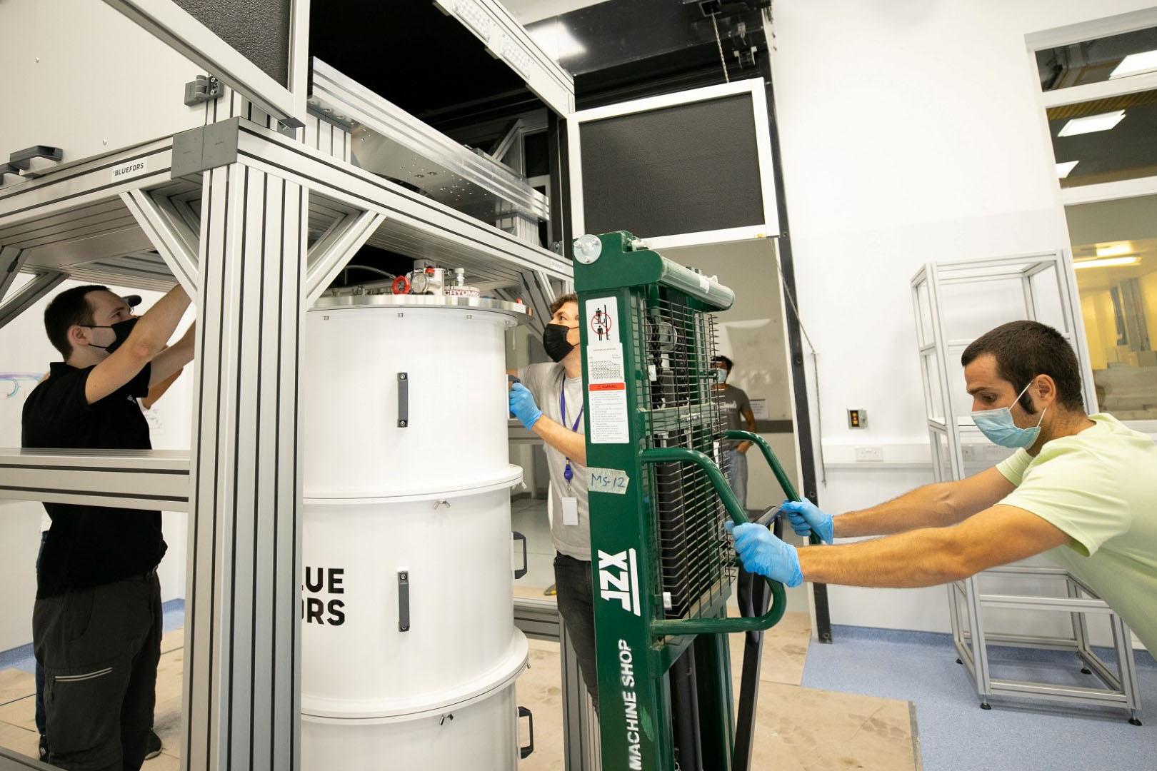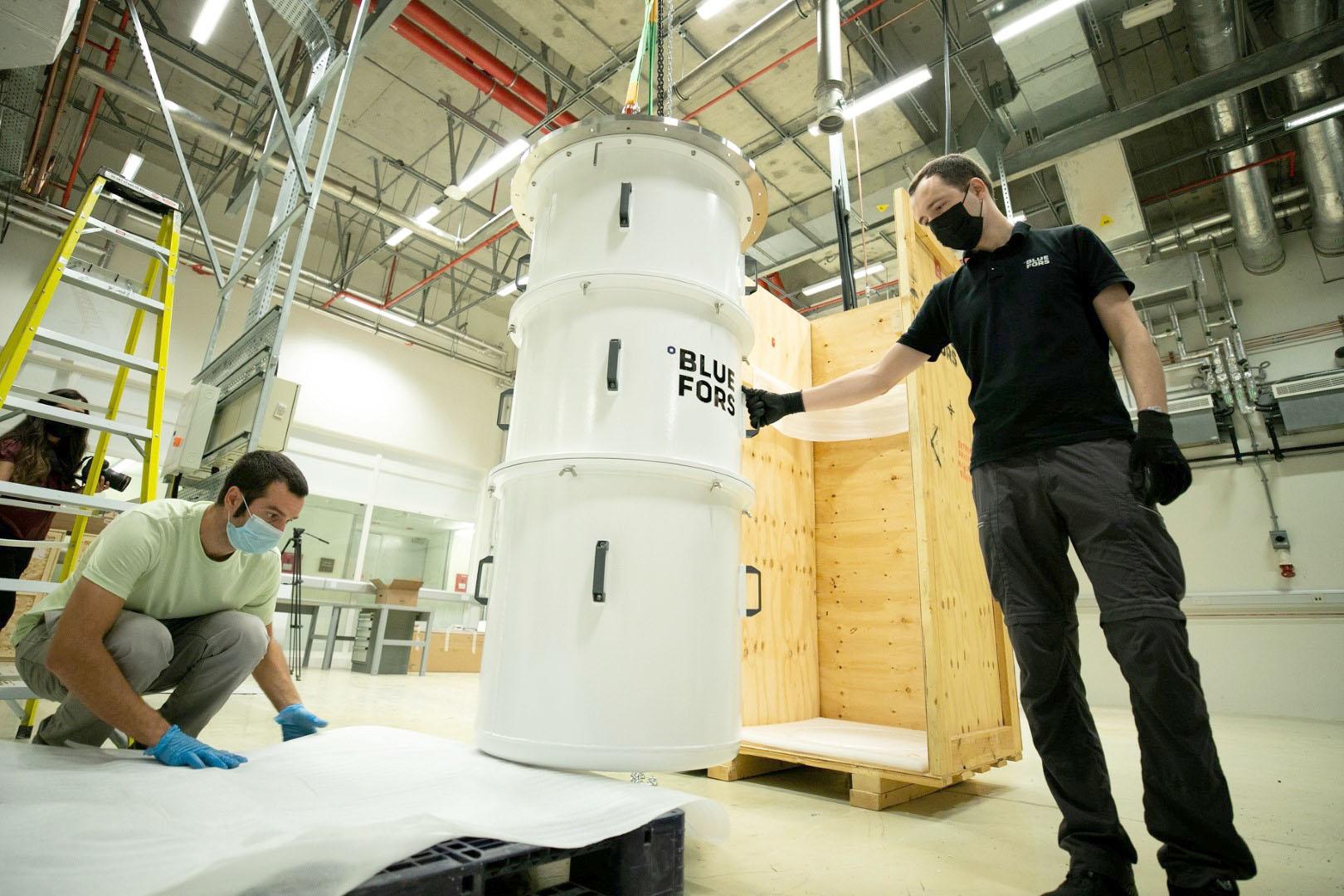 ووصلت ثلاجتا تمديد تستخدمان الهيليوم من فنلندا في بداية هذا الأسبوع داخل صناديق خشبية ضخمة، حيث تعتبر هذه الثلاجات مكوناً أساسياً يستخدم نظائر الهيليوم لتبريد رقائق الكوانتوم أو دماغ الكمبيوتر والحفاظ على المعلومات الكمومية. وتتكون ثلاجة التمديد من ستة مستويات، حيث يتوافق المستوى العلوي مع درجة حرارة الغرفة، في حين تنخفض الحرارة بشكل ثابت في المستويات المنخفضة حتى يتمكن الجهاز من تحقيق درجة حرارة منخفضة للغاية تبلغ 10 ميلي كلفن، أي واحد على مائة من درجة حرارة الفضاء الخارجي، والتي تعتبر درجة الحرارة الأمثل لكي تعمل رقائق الكوانتوم.