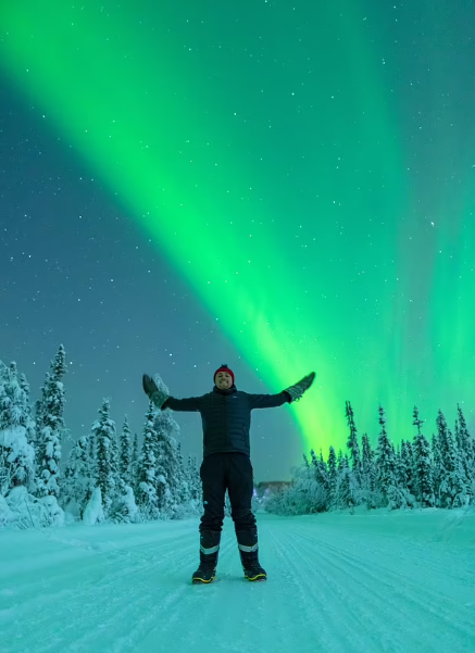 ولفت فينسينت ليدفينا في حديثه لصحيفة “الديلي ميل” البريطانية إلى أنه كان محاط فقط بأشجار التنوب السوداء المغطاة بالثلوج عندما التقط تدفقات من الألوان الخضراء والدم الحمراء تحوم فوقه في السماء.