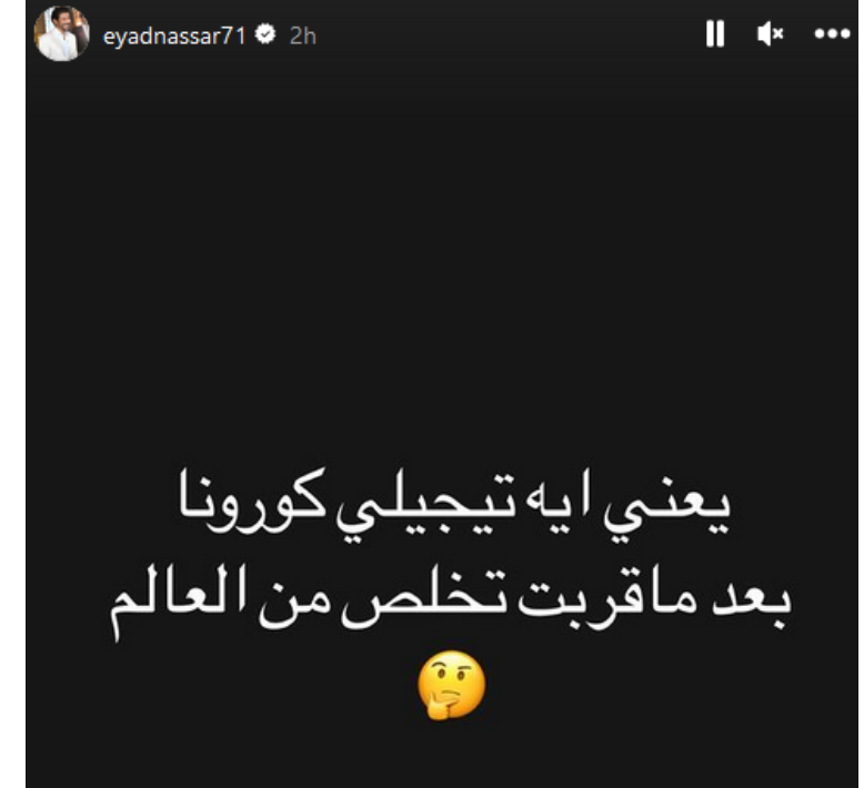 حيث علق إياد نصار قائلا: "يعنى إيه تيجيلى كورونا بعد ما قربت تخلص من العالم".