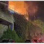 فيما أظهرت مشاهد للحريق ارتفاع ألسنة اللهب، بينما تحاول قوات الدفاع المدني السيطرة على الحريق.