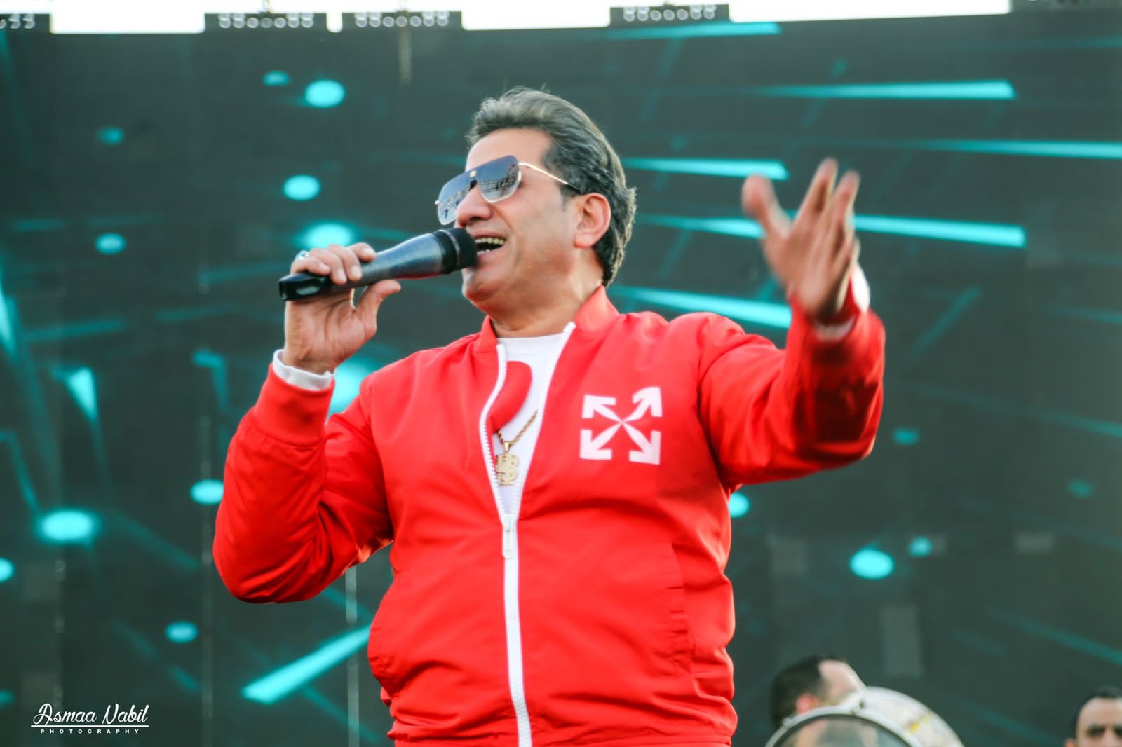 واشعل الفنان احمد شيبه الحفل بمجموعة من اغانيه الشهيرة مثل ( اه لو لعبت يا زهر، انا مش فاضلكوا، ب ١٠٠ وش ).