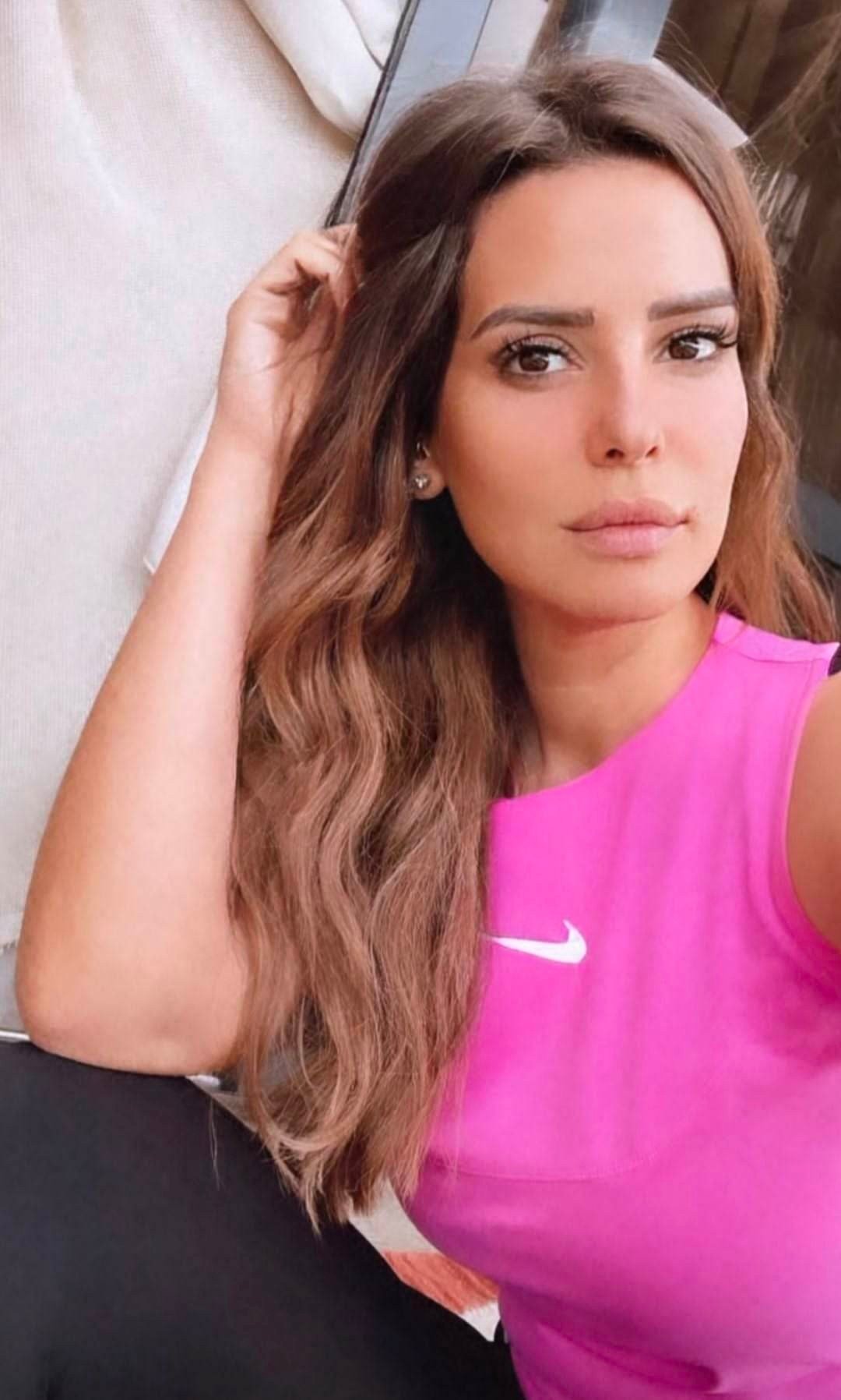 حيث ظهرت العاصي بالصورة بإطلالة صباحية هادئة، حيث ارتدت ملابس رياضية، عبارة عن بنطلون أسود وتيشيرت باللون الفوشيا، ومن الناحية الجمالية حرصت على عدم وضع مكياج، مع ترك شعرها ينسدل دون ربطه.