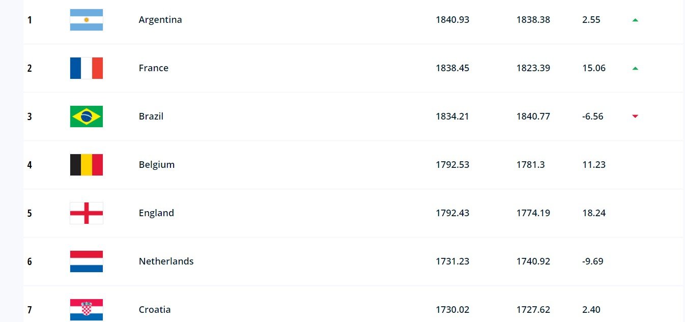 أظهر أول تصنيف شهري للمنتخبات لعام 2023 والصادر عن الاتحاد الدولى لكرة القدم "فيفا" والذي تصدر منتخب الأرجنتين يليه المنتخب الفرنسى فى المركز الثانى، تقدم منتخب مصر ليحتل المركز الخامس على مستوى قارة أفريقيا، بعد أن كان يحتل المركز السادس فى تصنيف الشهر الماضى.