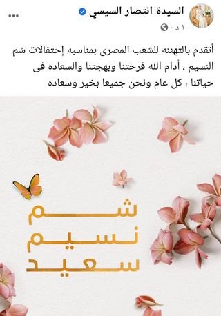 مصر.. انتصار السيسي تُهنئ المواطنين بمناسبة احتفالات شم النسيم