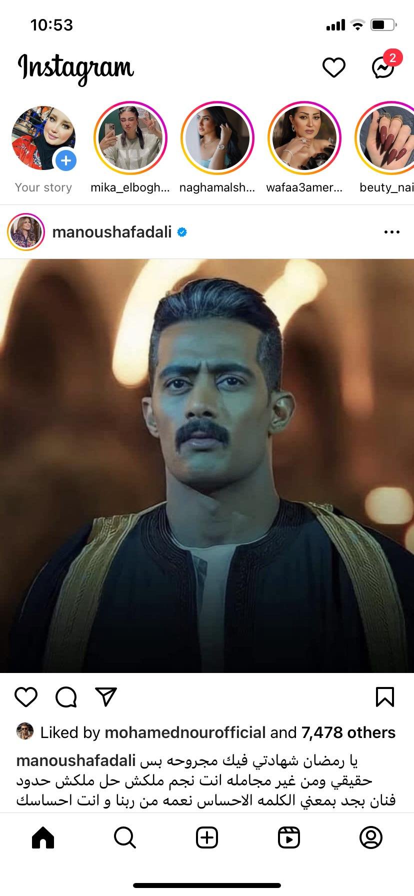قامت الفناة منة فضالي بنشر صورة للفنان محمد رمضان بشخصية "جعفر العمدة"، عبر صفحتها الشخصية على موقع انستجرام، وعلقت قائلة: "يا رمضان شهادتي فيك مجروحة بس حقيقي ومن غير مجاملة أنت نجم ملكش حل ملكش حدود فنان بجد بمعنى الكلمة الإحساس نعمة من ربنا وأنت إحساسك دائما سابق كل كلامك ممثل يتخاف منه ويتعملوا حساب".