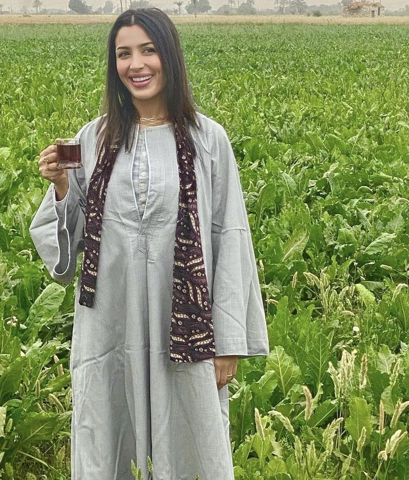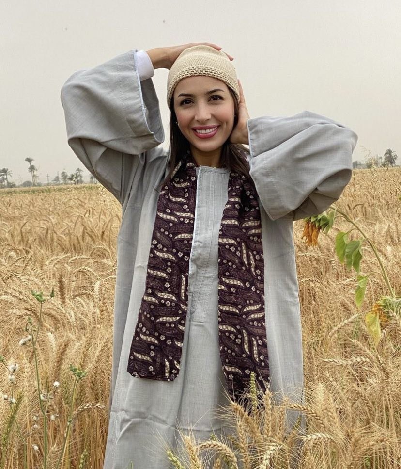 وظهرت جنات في الصور وهي ترتدي جلبابا صعيديا وسط أرض زراعية، ممسكة بكوب من الشاي، وعلقت عليها قائلة: "كل عام وأنتم بخير، العيد مستمر في الصعيد".