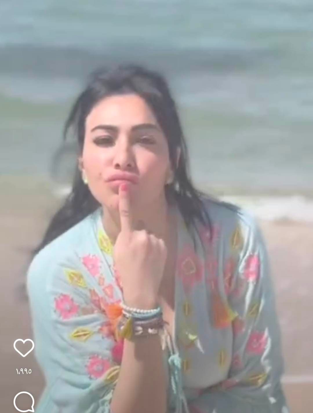 قامت الفنانة ميرهان حسين بمشاركة جمهورها بمقطع فيديو قصير لها، أثناء استمتاعها بوقتها، من أرض الفيروز بمدينة العريش.