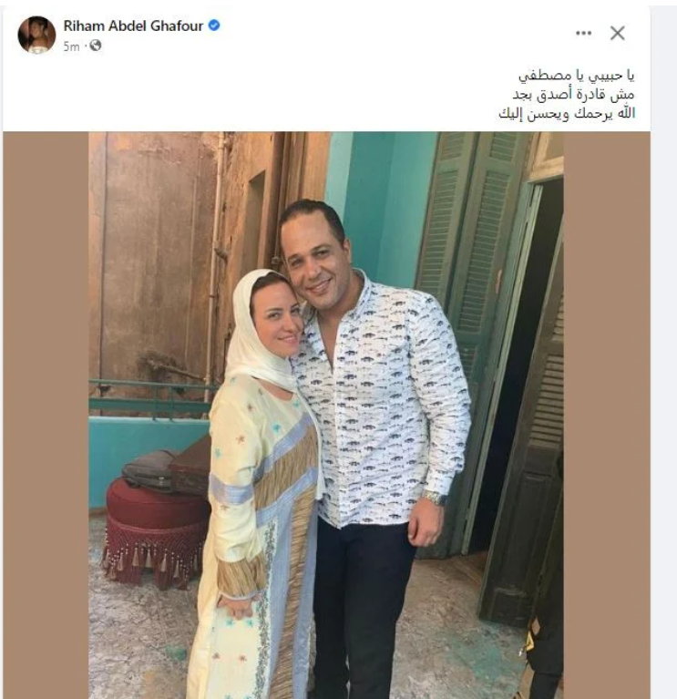 حيث نعت ريهام عبد الغفور، الفنان مصطفى درويش عبر "فيسبوك" وعلقت بكلمات تكشف عن صدمتها.