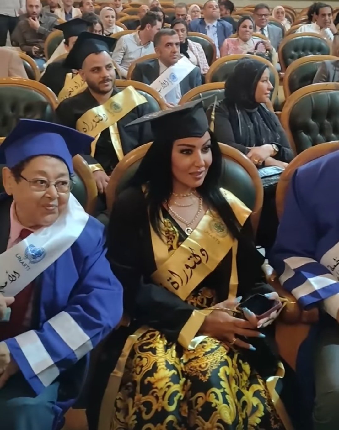 القصة بدأت بنشر الفنانة الشهيرة سمية الخشاب صورا لها أثناء تكريمها في حفل قيل إنه لمنظمة تتبع الأمم المتحدة ومنحها شهادة الدكتوراه الفخرية.