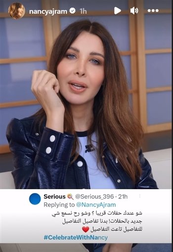 تلقت نانسي عجرم سؤالا حول حفلاتها القادمة، وأجابت بأنها تحيي خلال موسم الصيف حفلات في دبي والأردن ومصر وربما في تونس.