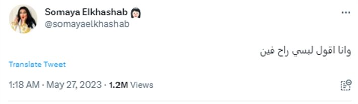وجاء في تغريدة سمية الخشاب "وأنا أقول لبسي راح فين؟!"، وهو ما ربطه الجمهور بإطلالة زوجها السابق أحمد سعد التي أثار بها الجدل في حفله الأخير بجدة.