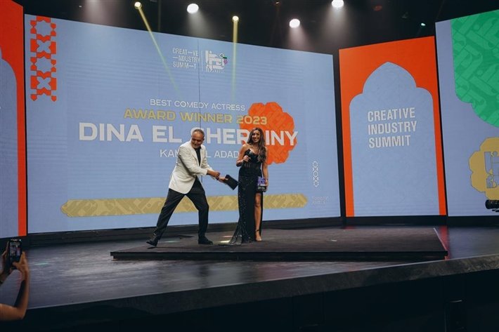 تسلمت الفنانة المصرية دينا الشربيني جائزتي أفضل ممثلة عن دورها في مسلسل "كامل العدد"، والذي حصل أيضا على جائزة أفضل مسلسل كوميدي في رمضان في حفل توزيع جوائز اختيار الجمهور.