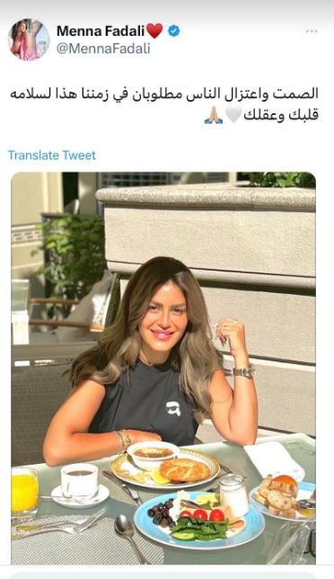 منه فضالي توجه لجمهورها رسالة غامضة على «تويتر»