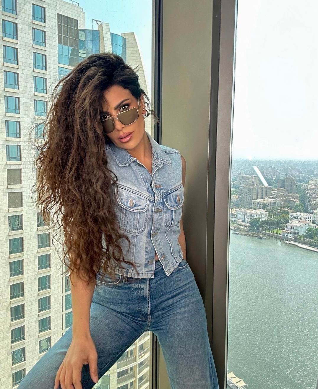 صبا مبارك تشارك الجمهور بإطلالة كاجوال من داخل ناطحة سحاب