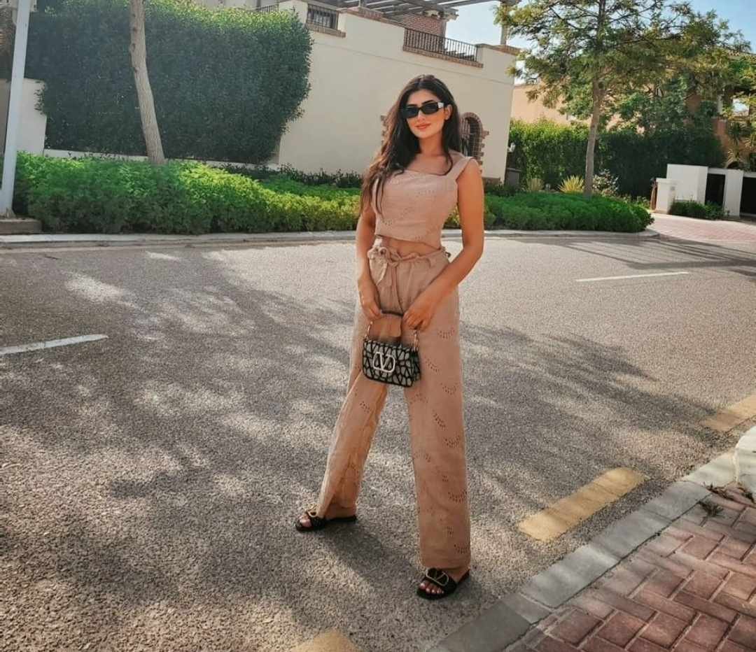 حيث ظهرت مي بالصور بإطلالة صباحية متميزة، حيث كانت تقف في وسط الشارع لالتقاط الصور، مرتدية ملابس رقيقة باللون البني، ونظارة شمسية لحمايتها من أشعة الشمس، ومن الناحية الجمالية اعتمدت على المكياج الهادئ الذي يتماشى مع إطلالتها ويزيد من جمالها وتألقها.