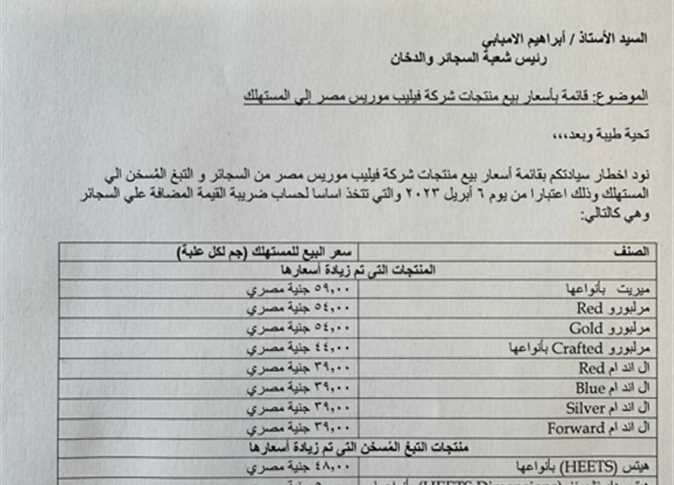 أسعار السجائر الرسمية