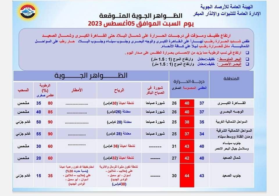 الأرصاد الجوية بمصر تحذر: ارتفاع في درجات الحرارة لتتجاوز الـ40 درجة