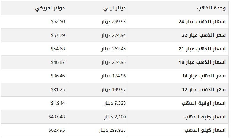 ينشر موقع خليجيون نيوز متوسط أسعار الذهب في ليبيا خلال تعاملات اليوم الأحد 06 أغسطس 2023.