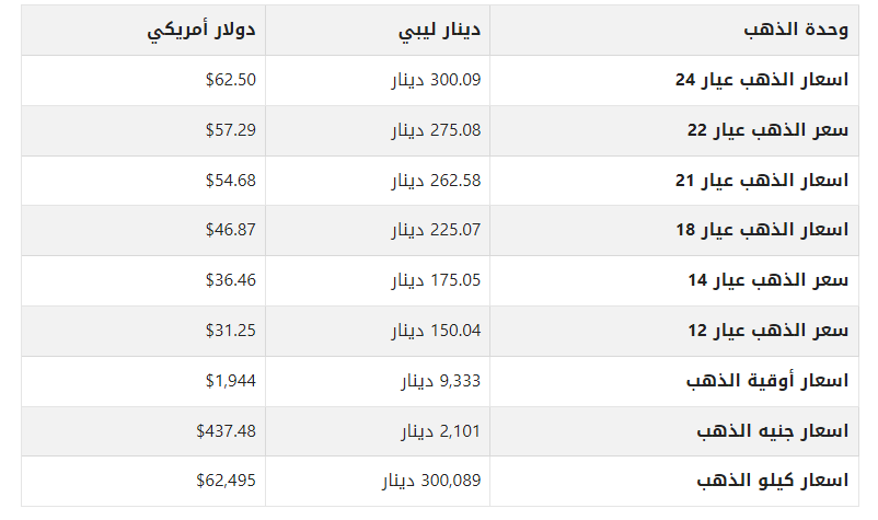ينشر موقع خليجيون نيوز متوسط أسعار الذهب في ليبيا خلال تعاملات اليوم الاثنين 07 أغسطس 2023.