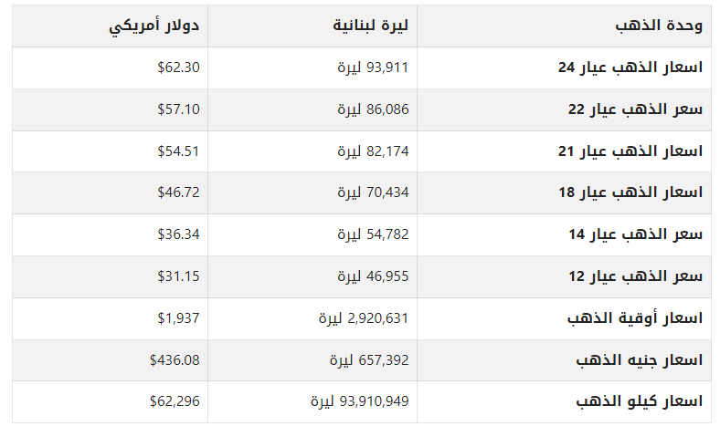 ينشر موقع خليجيون نيوز متوسط أسعار الذهب في لبنان اليوم الثلاثاء 08 أغسطس 2023.