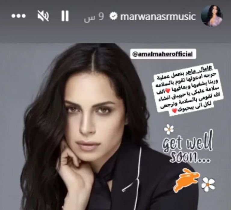 وكانت الفنانة مروة نصر قد نشرت صورة لزميلتها وتمنت لها الشفاء العاجل، ونفت أن تكون العملية جراحة تجميلية بعد سؤال أحد المتابعين.