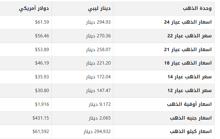ينشر موقع خليجيون نيوز متوسط أسعار الذهب في ليبيا اليوم الخميس 10 أغسطس 2023.