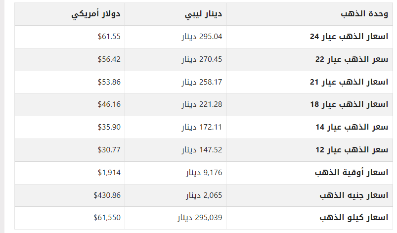 أسعار الذهب في ليبيا اليوم