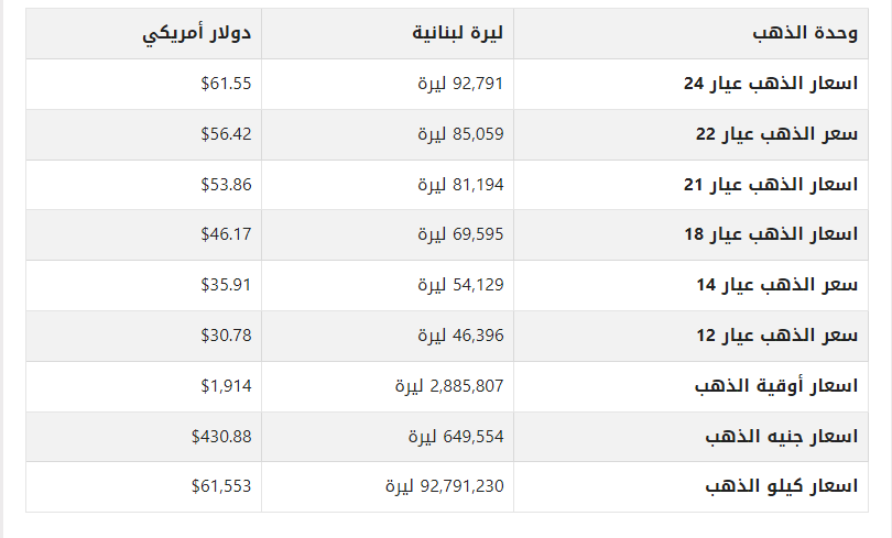 ينشر موقع خليجيون نيوز متوسط أسعار الذهب في لبنان خلال تعاملات اليوم السبت 12 أغسطس 2023.