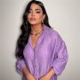 وتركت أسماء جلال شعرها ينسدل مموجا على كتفها مع مكياج بألوان هادئة.