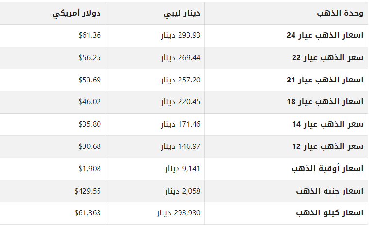 ينشر موقع خليجيون نيوز متوسط أسعار الذهب في ليبيا اليوم الثلاثاء 15 أغسطس 2023.