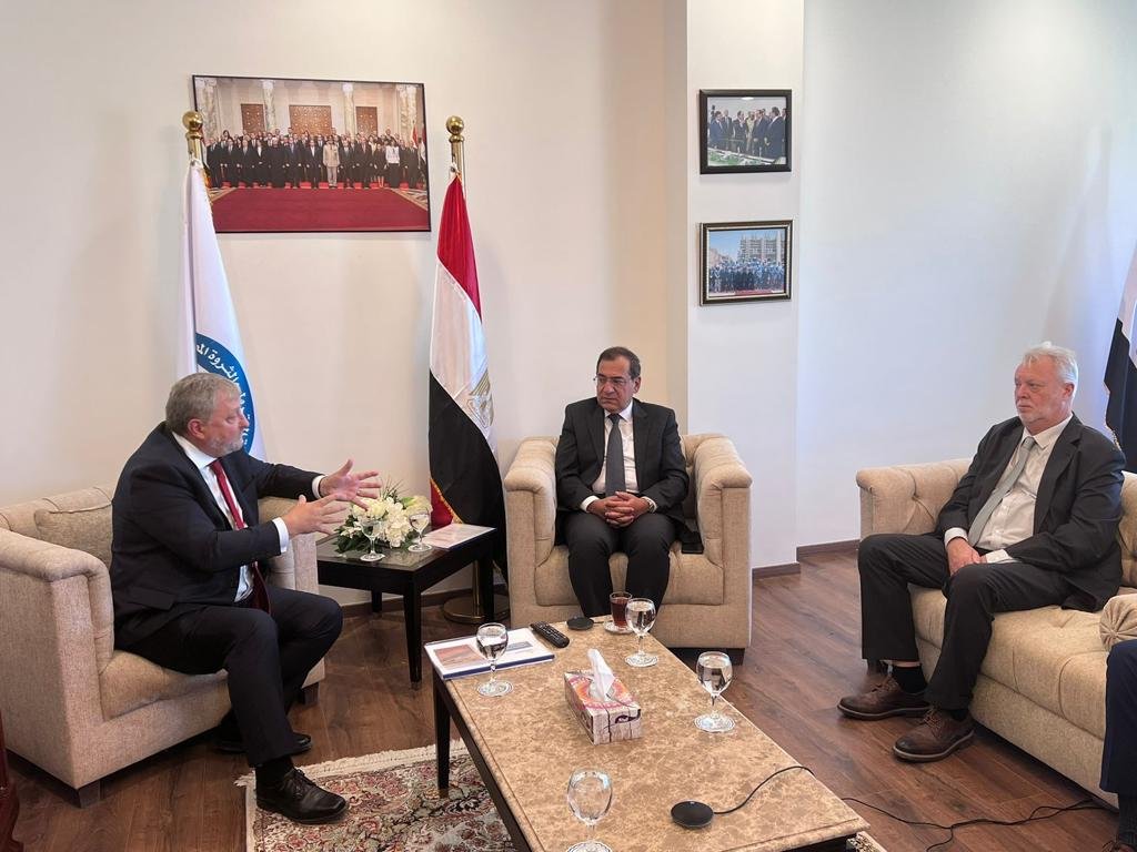 التقى المهندس طارق الملا وزير البترول والثروة المعدنية المصري مع وفد شركة ترانس جلوب الكندية برئاسة جورج ماكسويل الرئيس التنفيذي للشركة والتي تقوم بأعمال البحث والاستكشاف والإنتاج للبترول والغاز كمشغل رئيسى في مناطق امتيازها بالصحراوين الشرقية والغربية.