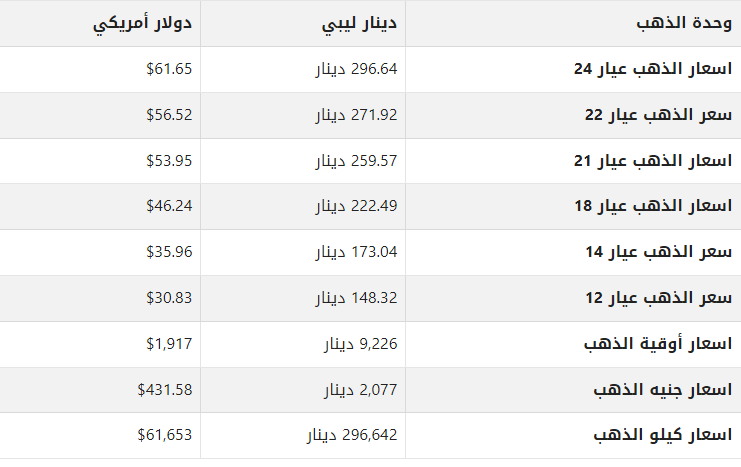 أسعار الذهب في ليبيا اليوم