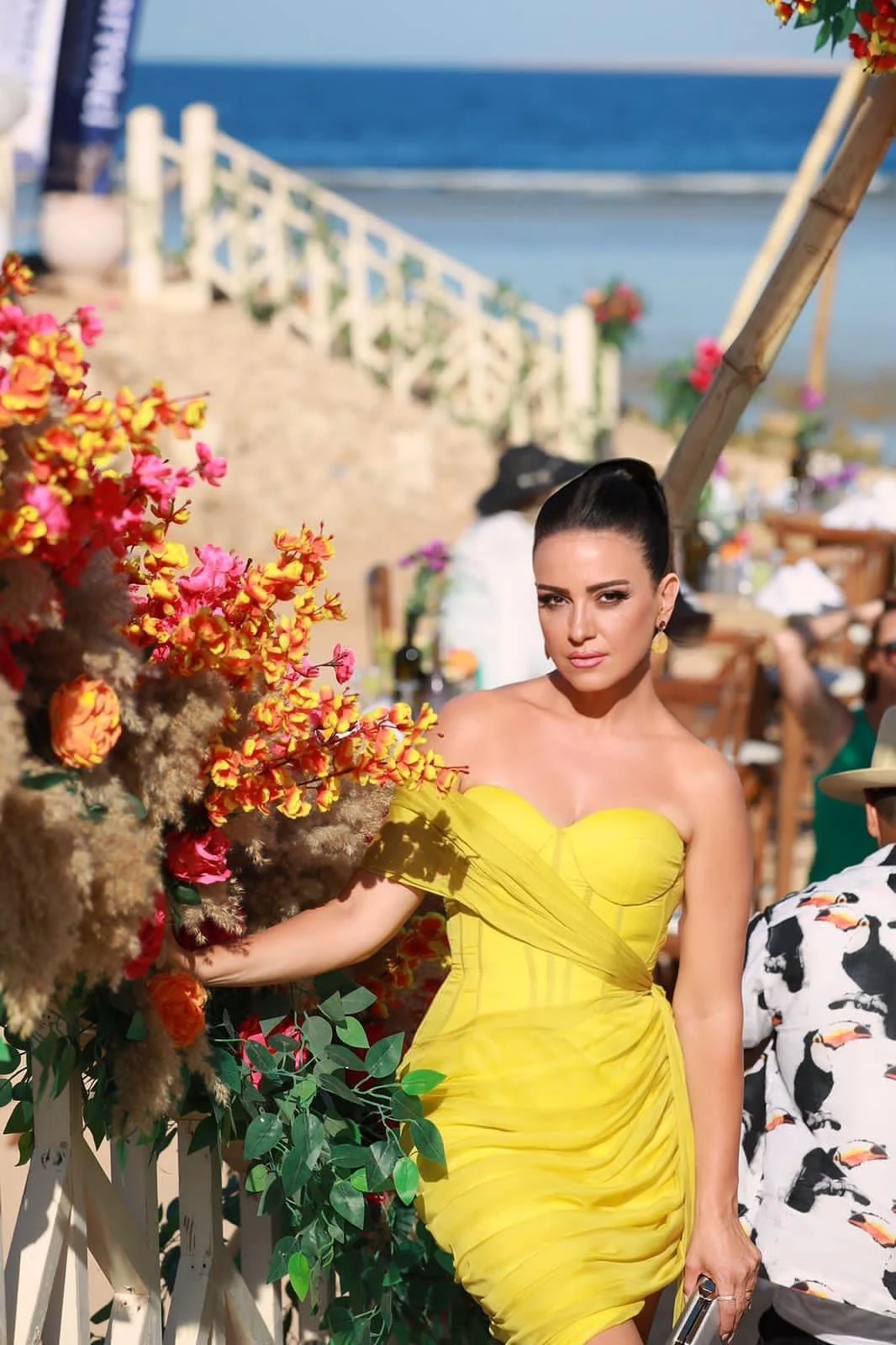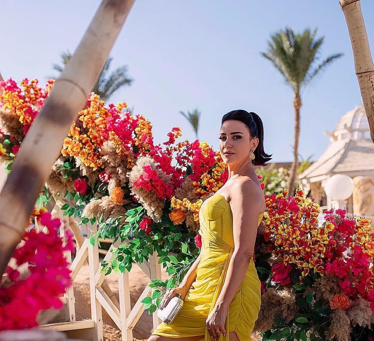 حيث تألقت ريهام باطلالة أنيقة ومميزة وهو ما لفت لها الأنظار مرتدية فستانا باللون الأصفر الفاتح وهو ما كشف عن قوامها المنحوت.