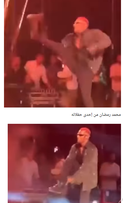 حيث ظهر محمد رمضان في إحدى حفلاته خارج مصر وهو يرقص رقصته الشهيرة، وأثناء رقصه طار حذاؤه في الهواء، ليعود مرة أخرى ويرتديه ويكمل الغناء.