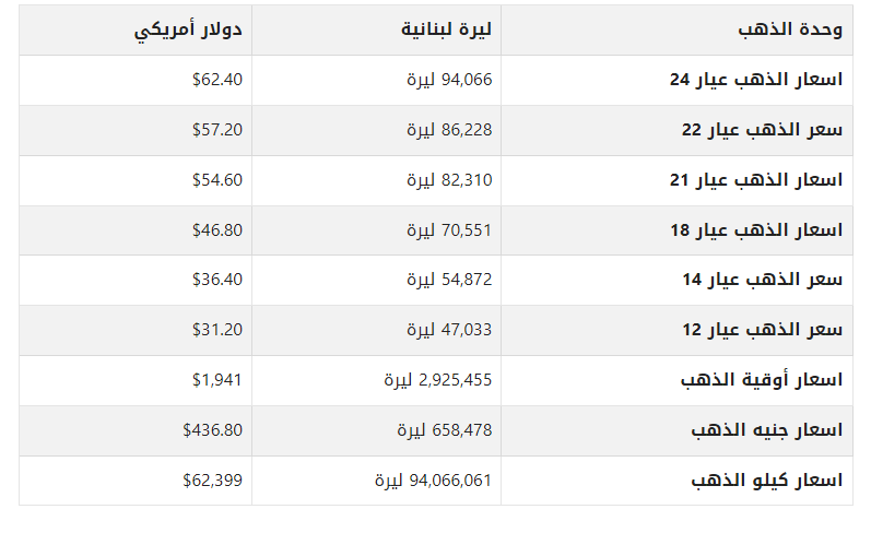 ينشر موقع خليجيون نيوز متوسط أسعار الذهب في لبنان خلال تعاملات اليوم الأحد 03 سبتمبر 2023.