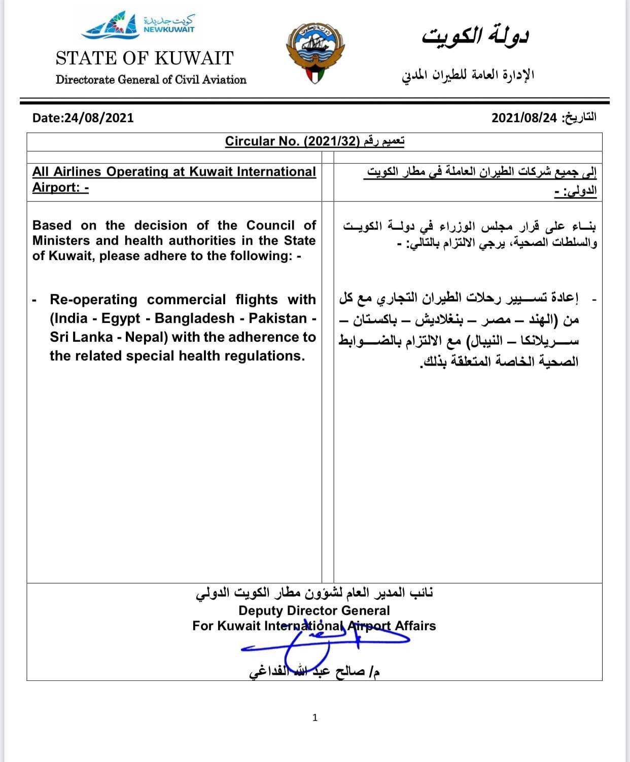 الكويت تعيد تسيير رحلات الطيران مع ٦ دول بينها مصر