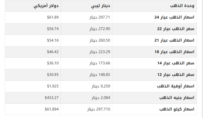 تعرف على أسعار الذهب في ليبيا اليوم السبت 16 سبتمبر 2023