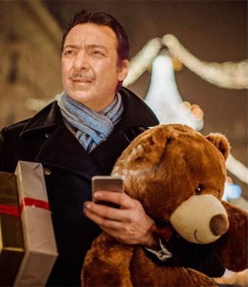 أما النجم رشدي أباظة ظهر حاملاً دمية وهدايا الكريسماس