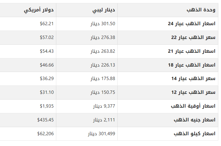 ينشر موقع خليجيون نيوز متوسط أسعار الذهب في ليبيا اليوم الثلاثاء 19 سبتمبر 2023.