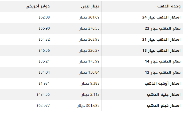 أسعار الذهب في ليبيا اليوم