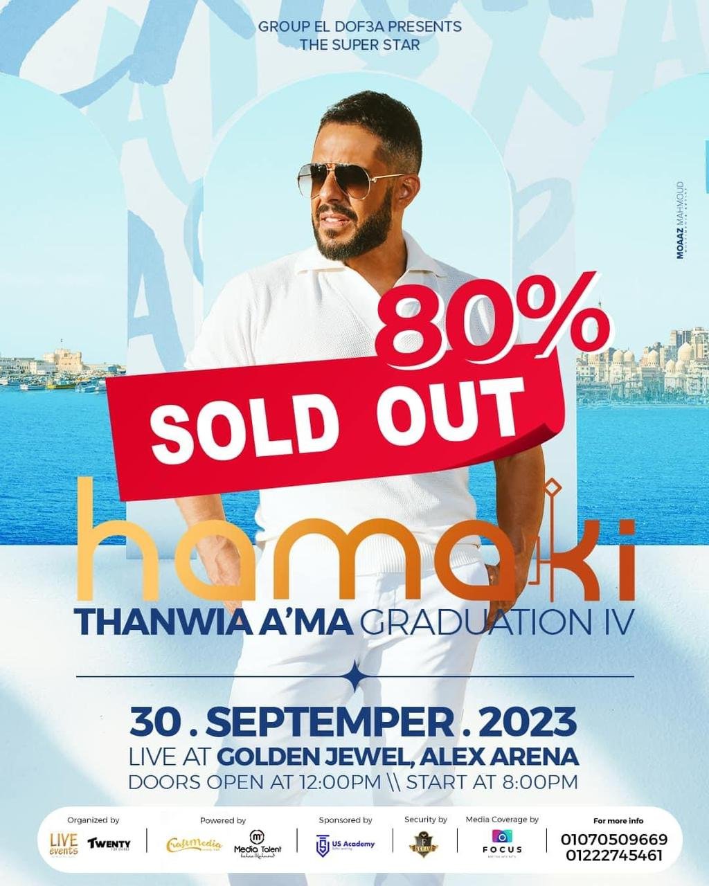 وكشفت الشركة المنظمة للحفل عبر صفحتها الرسمية على موقع التواصل الاجتماعي «فيس بوك» عن نفاد 80٪ من تذاكر الحفل قبل إقامتها بعشر أيام، وقامت بنشر البوستر الدعائي الرسمي للحفل، مؤكدين على أن مستوى الحفل مميز وستكون سهرة استثنائية لجمهور استثنائي لحفل تخرج طلبة ثانوية عامة دفعه 2023.