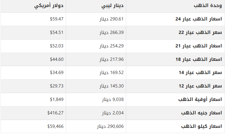 أسعار الذهب في ليبيا اليوم