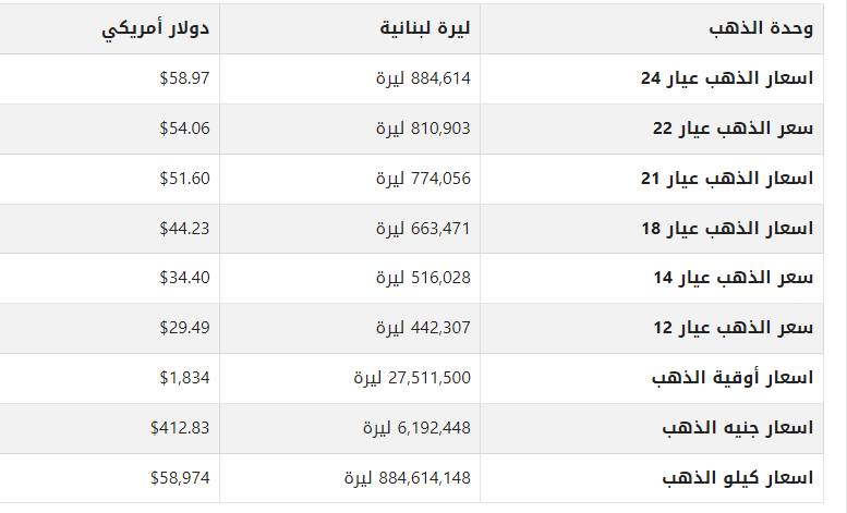 تعرف على أسعار الذهب في لبنان اليوم الاثنين 09 أكتوبر 2023