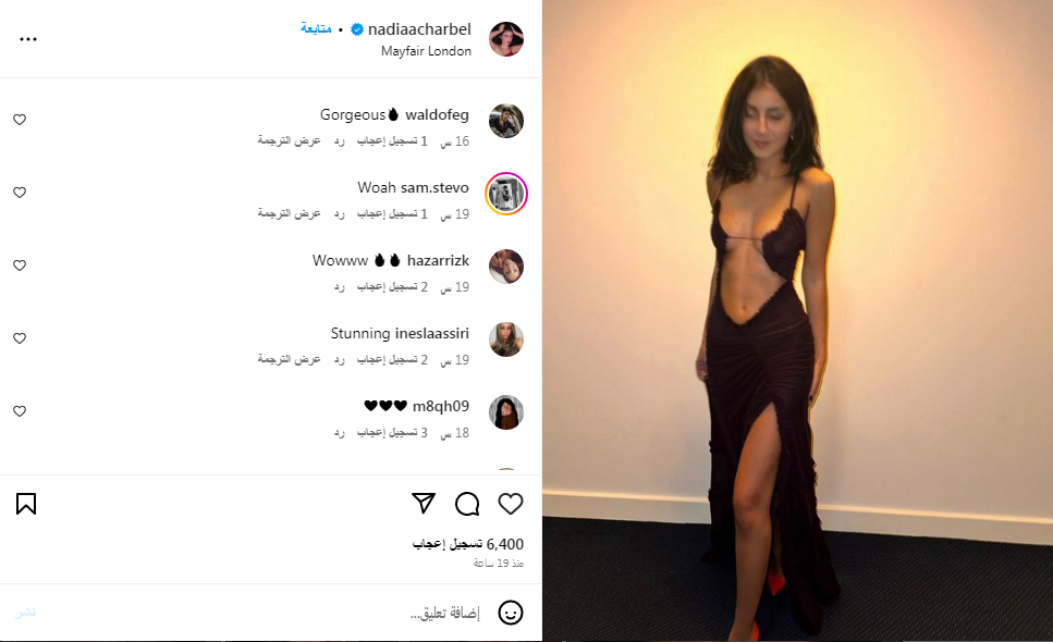 تجدر الإشارة إلى أن هذه ليست المرة الأولى التي تختار فيها نادية إطلالة جريئة، حيث اعتادت على مشاركة صور بملابس تستفز التعليقات وتثير الجدل بين متابعيها.