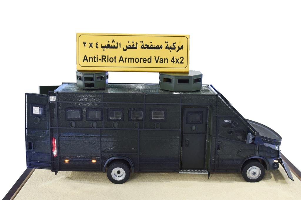 3- هناك عربة فض الشغب المُصفحة « قادر-1» وقد تم إنتاج العربة بمصانع الهيئة ولأول مرة في مصر بمستوى حماية (B4) وممانعة حتى (7.62 × 39 ) وتم تجهيزها بالعديد من التجهيزات طبقاً لمطالب وزارة الداخلية، علما بأن إمتلاك هذه القدرة يُمكننا من تنفيذ أيه تجهيزات طبقاً لرغبة العميل.